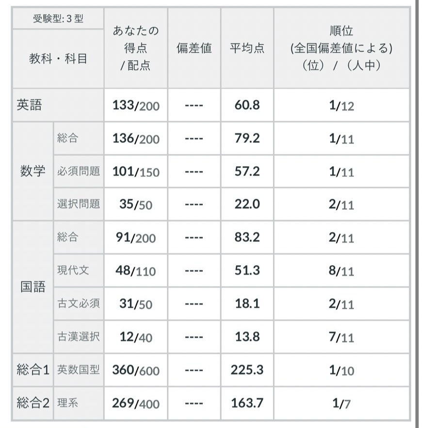 8月に行われた、全統模試にて自身最高の成績を修められました!!