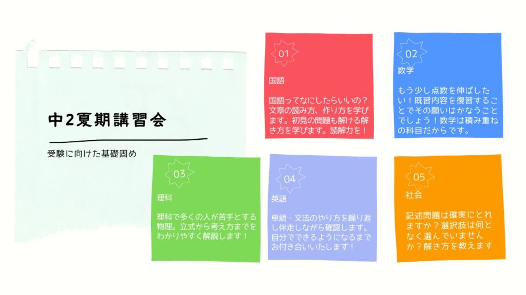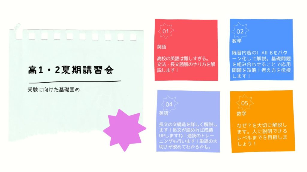集団指導個別指導中3入試特訓教室中3入試模試特色選抜対策(中3)学習管理小論文対策講座(高3)